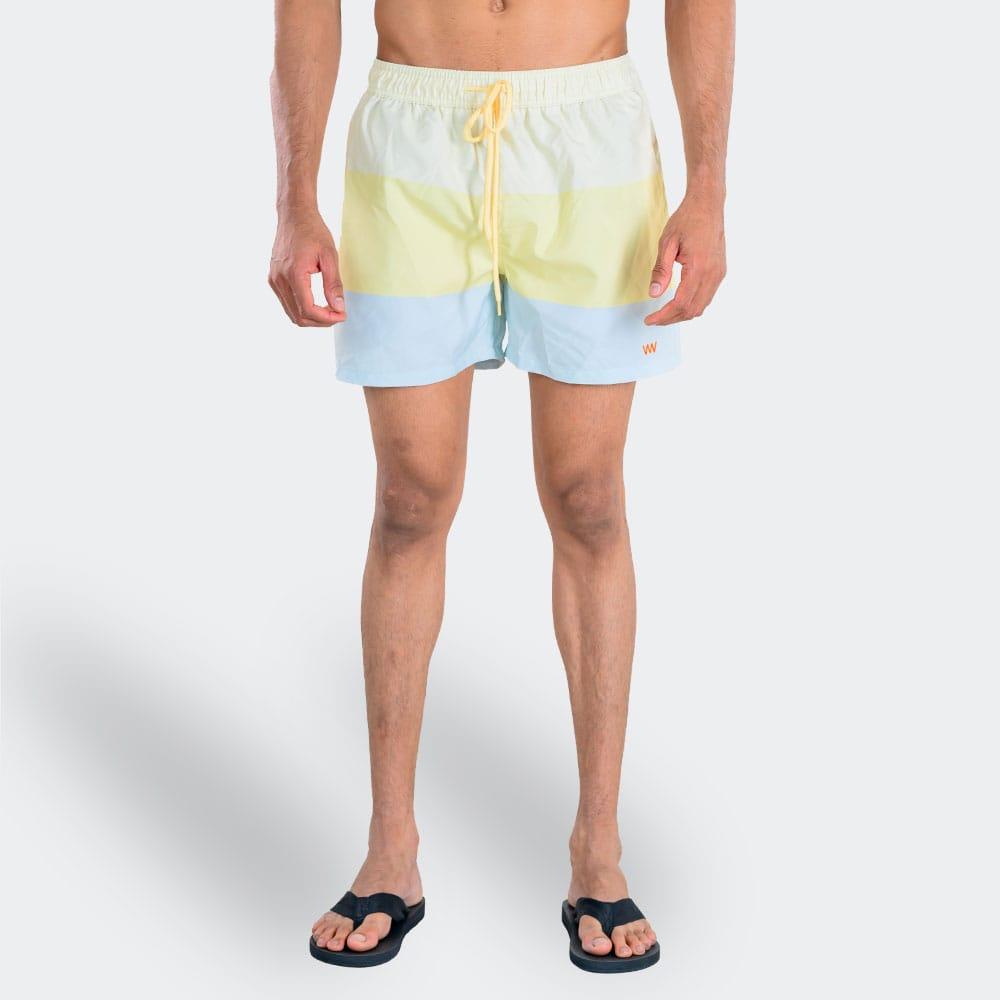 If you are someone who loves experimenting with colours, these light multi-colored shorts are an excellent choice. They stand out with their playful yet balanced design. Pair them with: