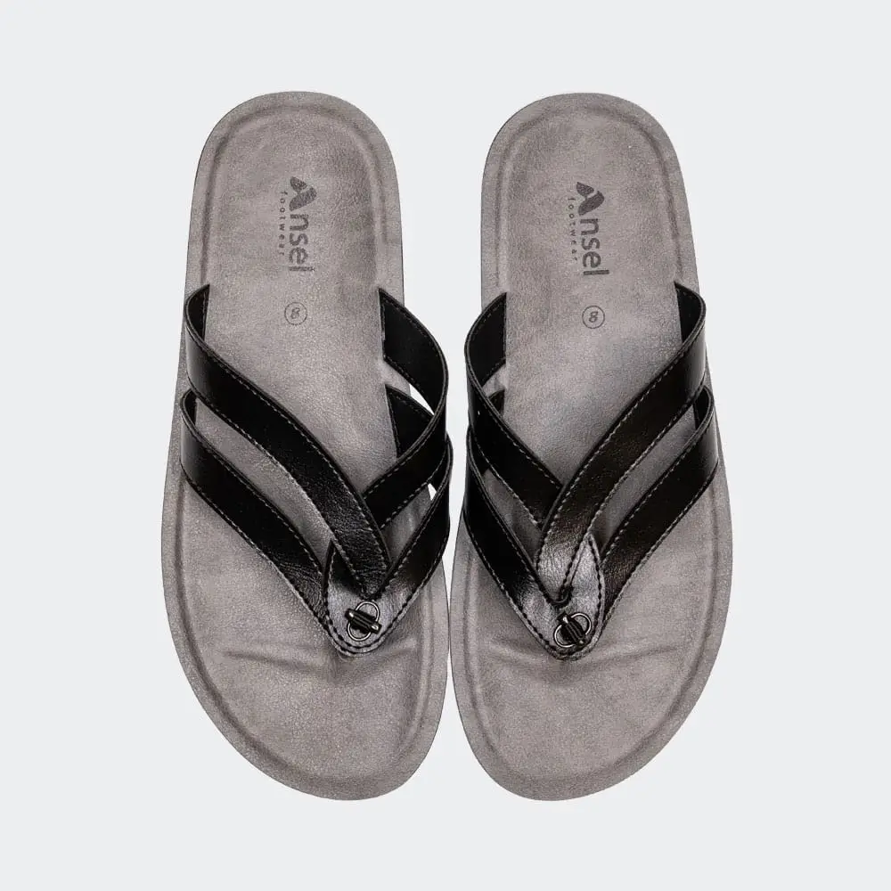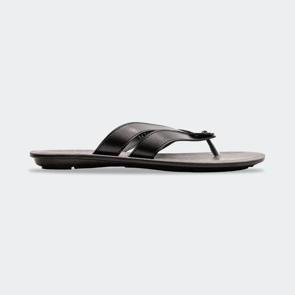 The black leather thong sandals offer a contemporary take on formal footwear. The refined design also features smooth leather straps and a sophisticated toe post. Aside from the seamless style-design blend, the clean lines make them suitable for events, gatherings, or occasions.